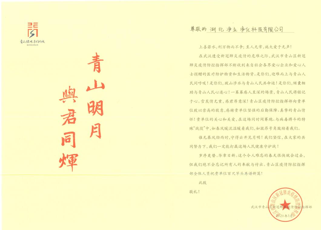 青山明月,与君同辉——公司疫情期间捐赠物品证书